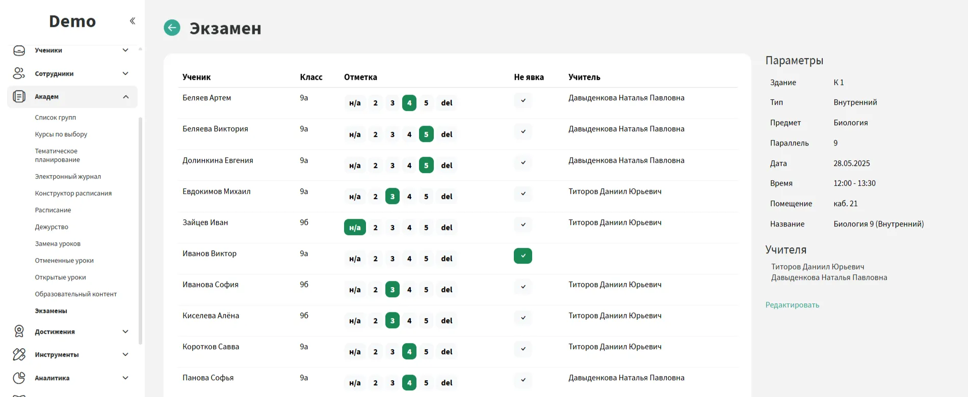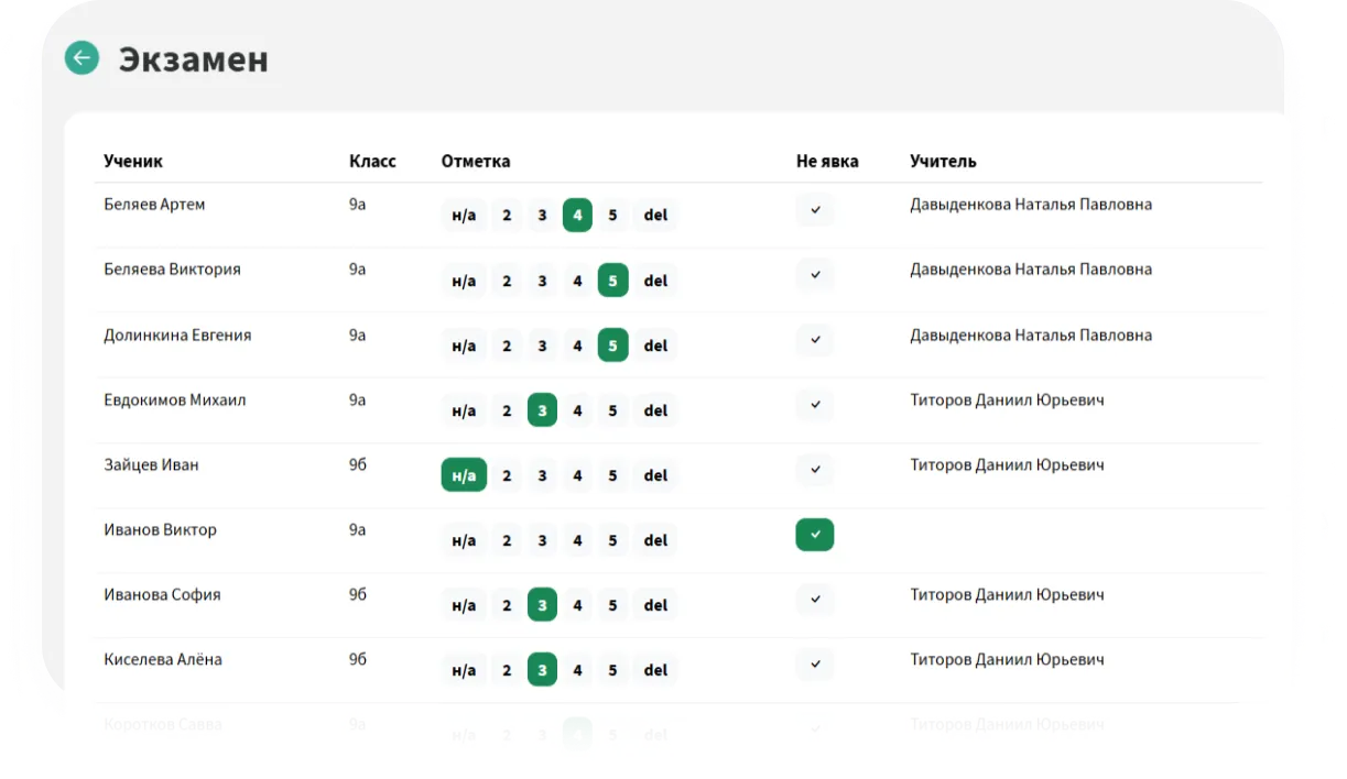 Назначьте экзамен и добавьте учеников