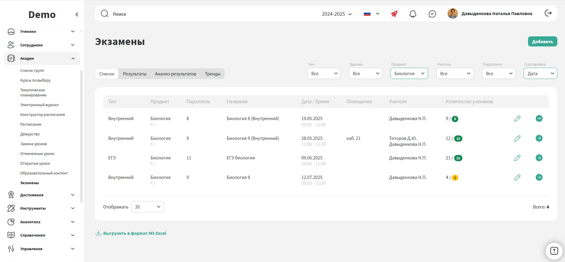 Отслеживайте успеваемость и выгружайте результаты