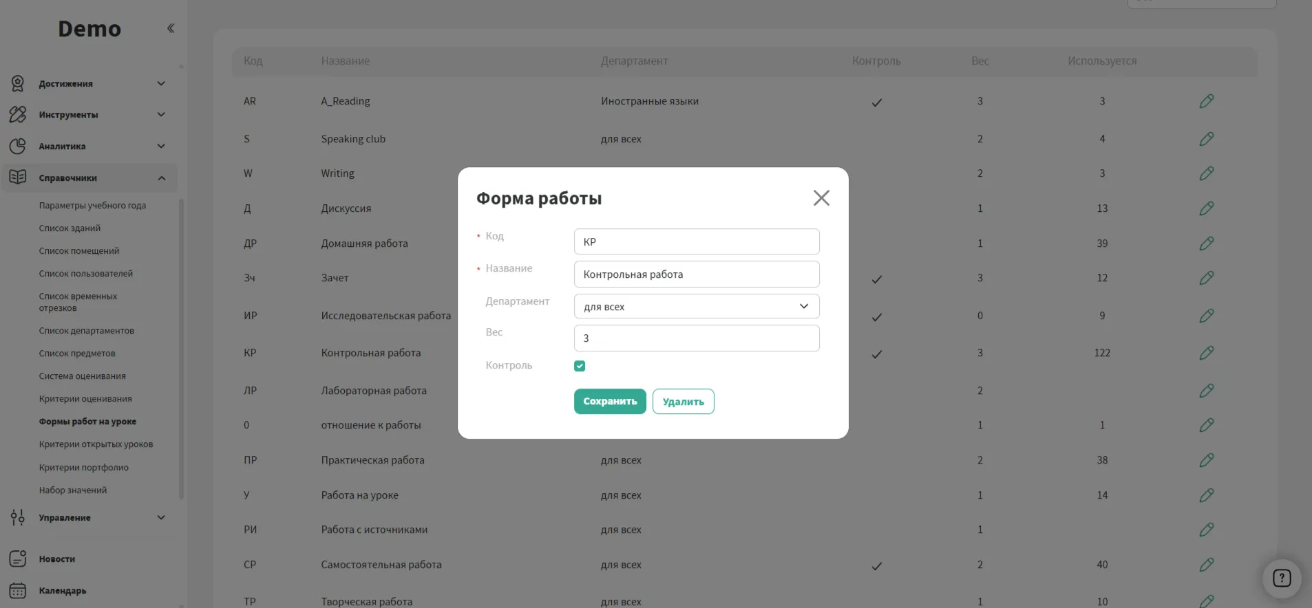 От домашних заданий до контрольных и проектов — каждая форма работы может иметь свой вес. Это помогает учитывать сложность заданий при расчёте средней и итоговой оценки.