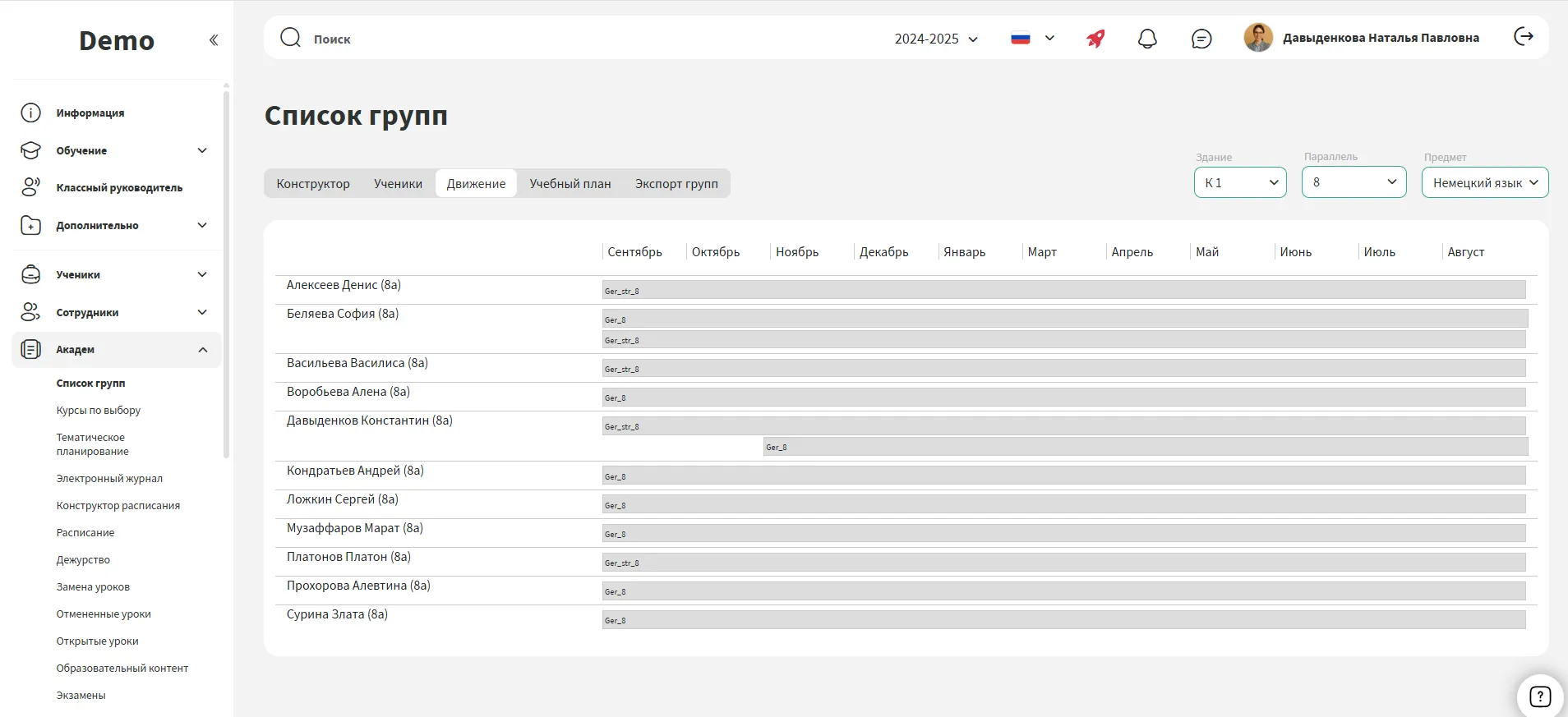 Отслеживайте перемещения учеников между учебными группами или узнавайте, с какого момента ученик присоединился в конкретной группе.