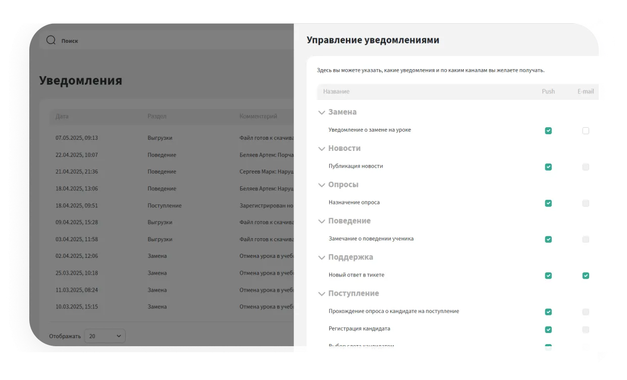 Все оповещения отображаются в личных кабинетах на всех устройствах — ничего не теряется.