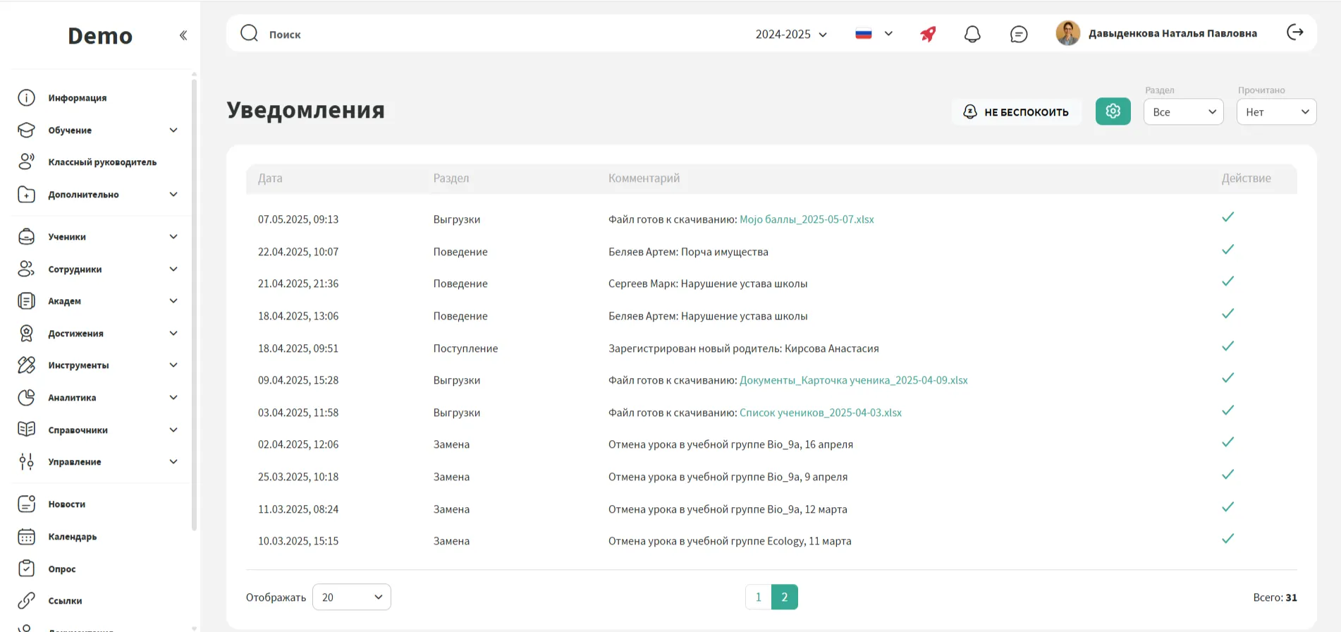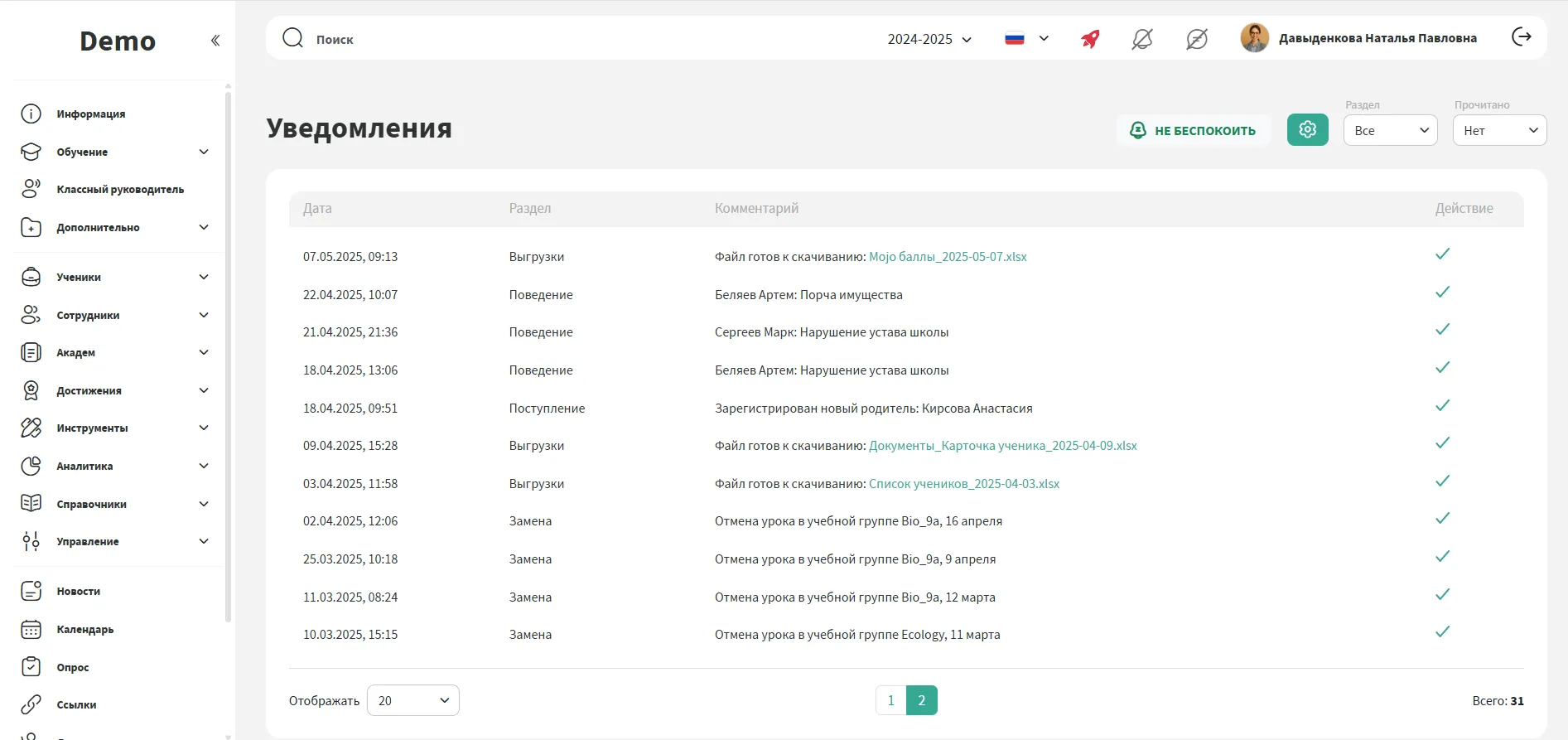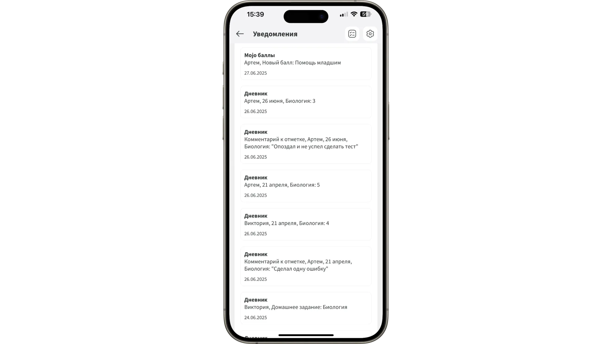 Новые оценки, домашние задания, поведение, репорты, замены, публикации и статус поступления — всё приходит вовремя.